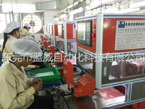 東莞自動噴油機、全自動夾模機客戶現(xiàn)場,