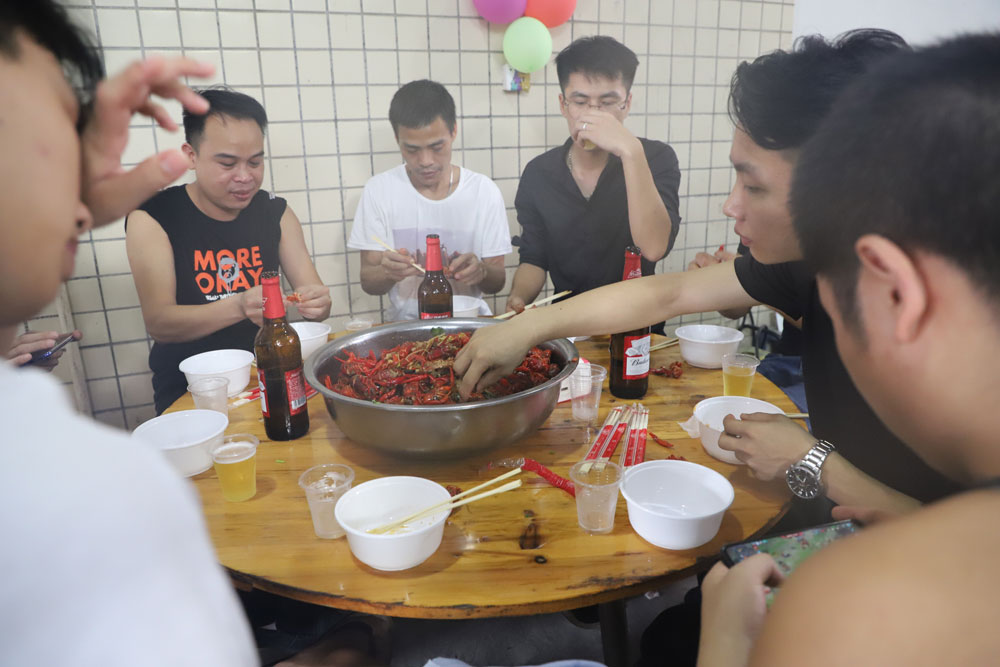 下午三點(diǎn),一切準(zhǔn)備就緒;接著就是藍(lán)威的大廚們大展身手的時(shí)候洛,不一會(huì)兒的功夫,美食的香味傳遍整個(gè)廚房,一道道美食:蒜香小龍蝦、香辣小龍蝦、永州血鴨、水煮肉片、紅燒魚塊、涼拌松花蛋、酸甜西紅柿、辣子雞新鮮出爐啦!